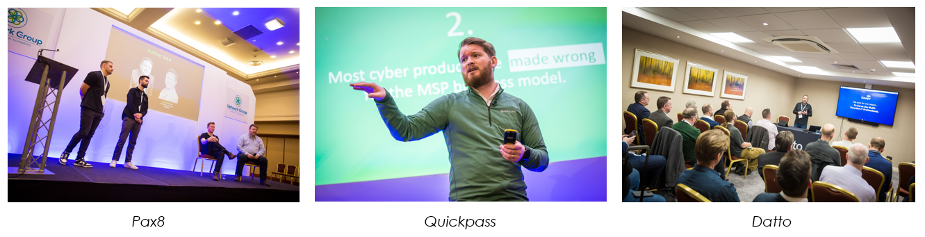 Our Inspire Partners: Datto, Ingram Micro, Pax8, Pia, Quickpass, and Threatlocker, took to the stage to pitch their afternoon workshops to Members. Before they all headed into their first set of workshops.